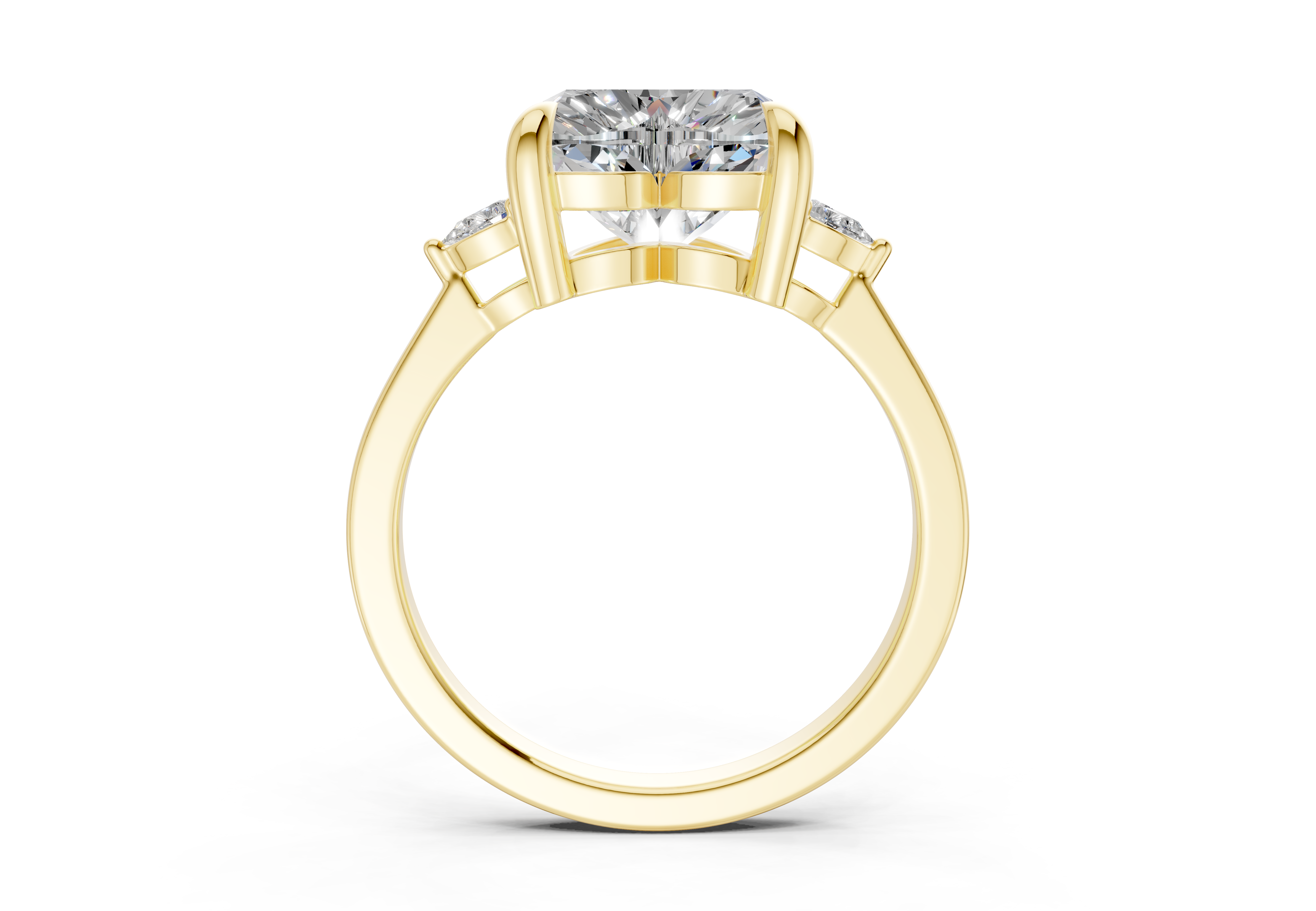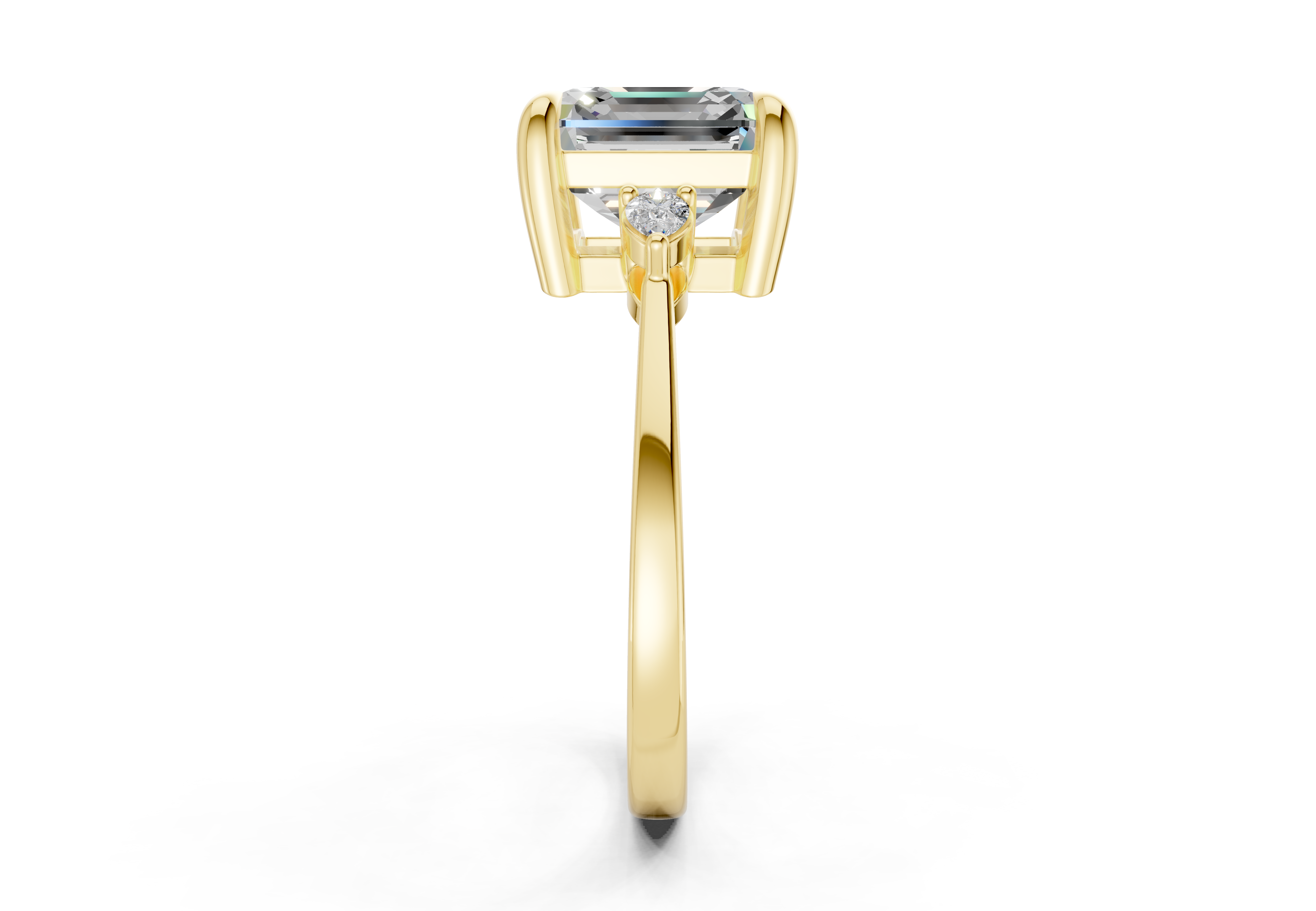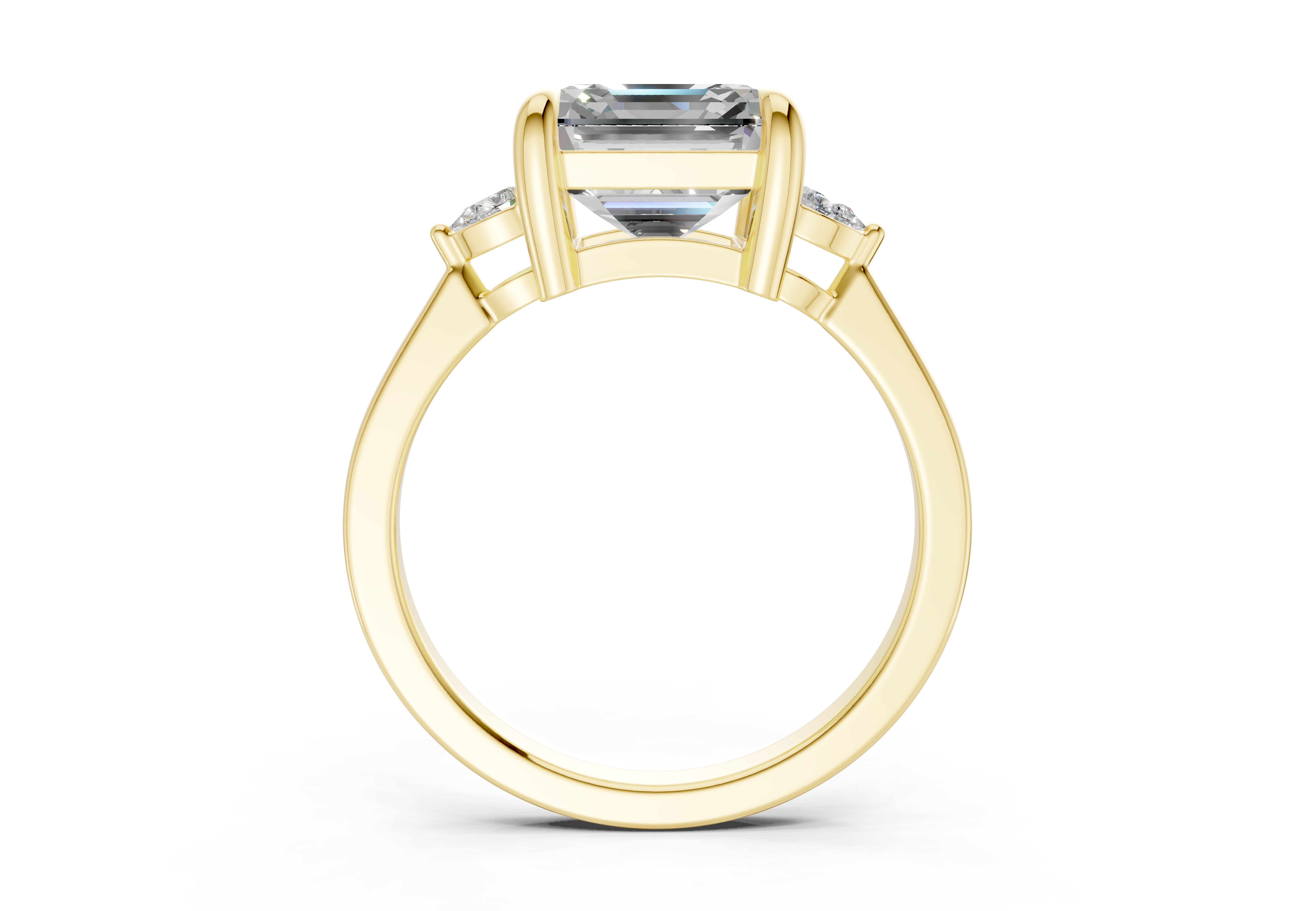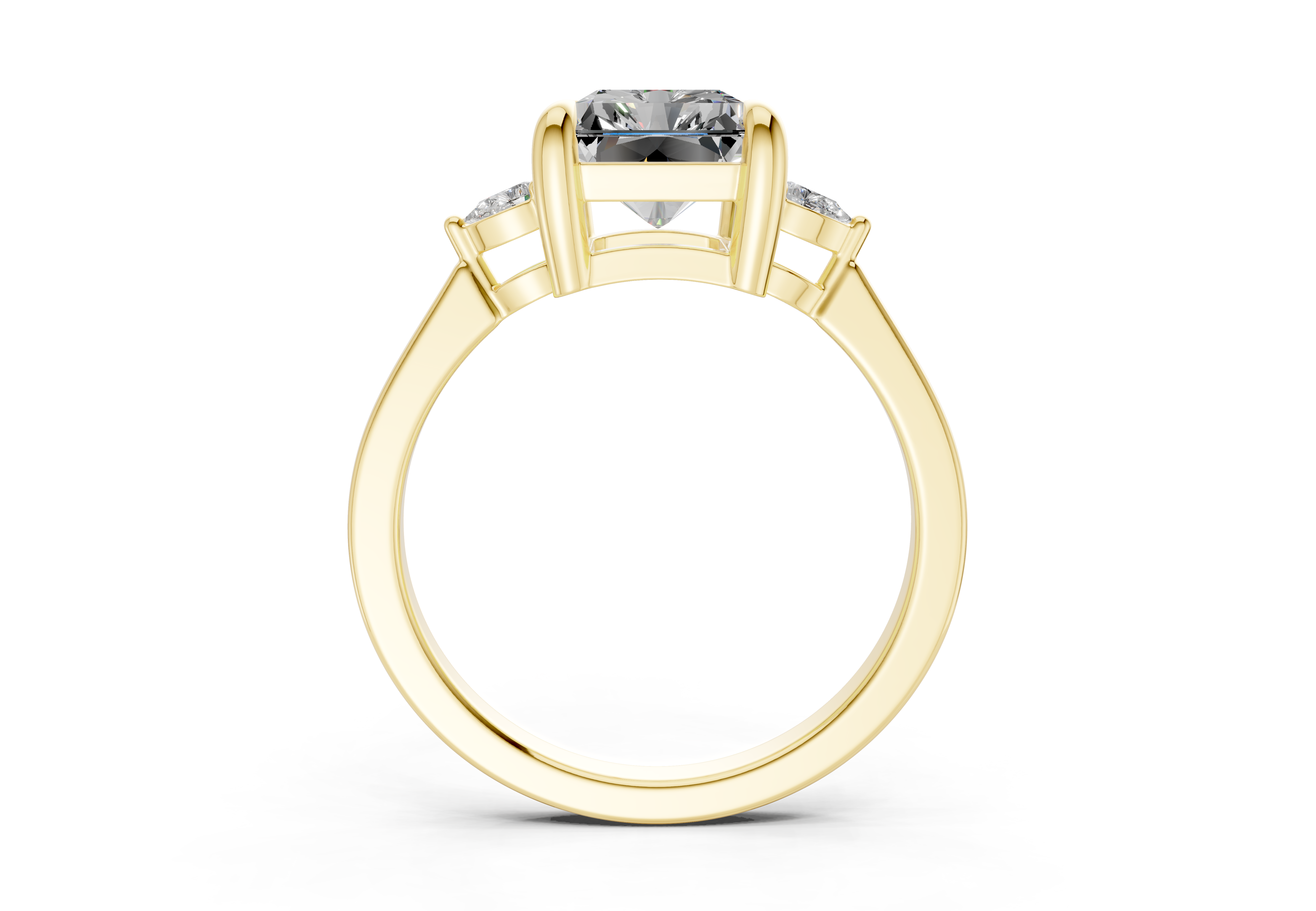 The Lyanna Three Stone 2mm Enagaement Ring features a mesmerizing Lab Grown Diamond cut center diamond, beautifully complemented by Two additional stones that symbolize your past, present, and future together. This timeless design showcases the Diamond unique geometry, creating a ring that blends modern elegance with classic symbolism. Ideal for those who value meaningful beauty, this ring is available in 14K or 18K yellow, white, rose gold, or platinum, with options for custom engraving.