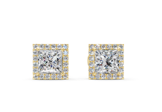 These Princess diamond halo studs are designed to shine from every angle. Each IGI-certified center diamond is surrounded by a sparkling halo of smaller diamonds, creating an extra pop of brilliance in a timeless 14K gold setting. Perfect for adding just the right touch of glam to any look.